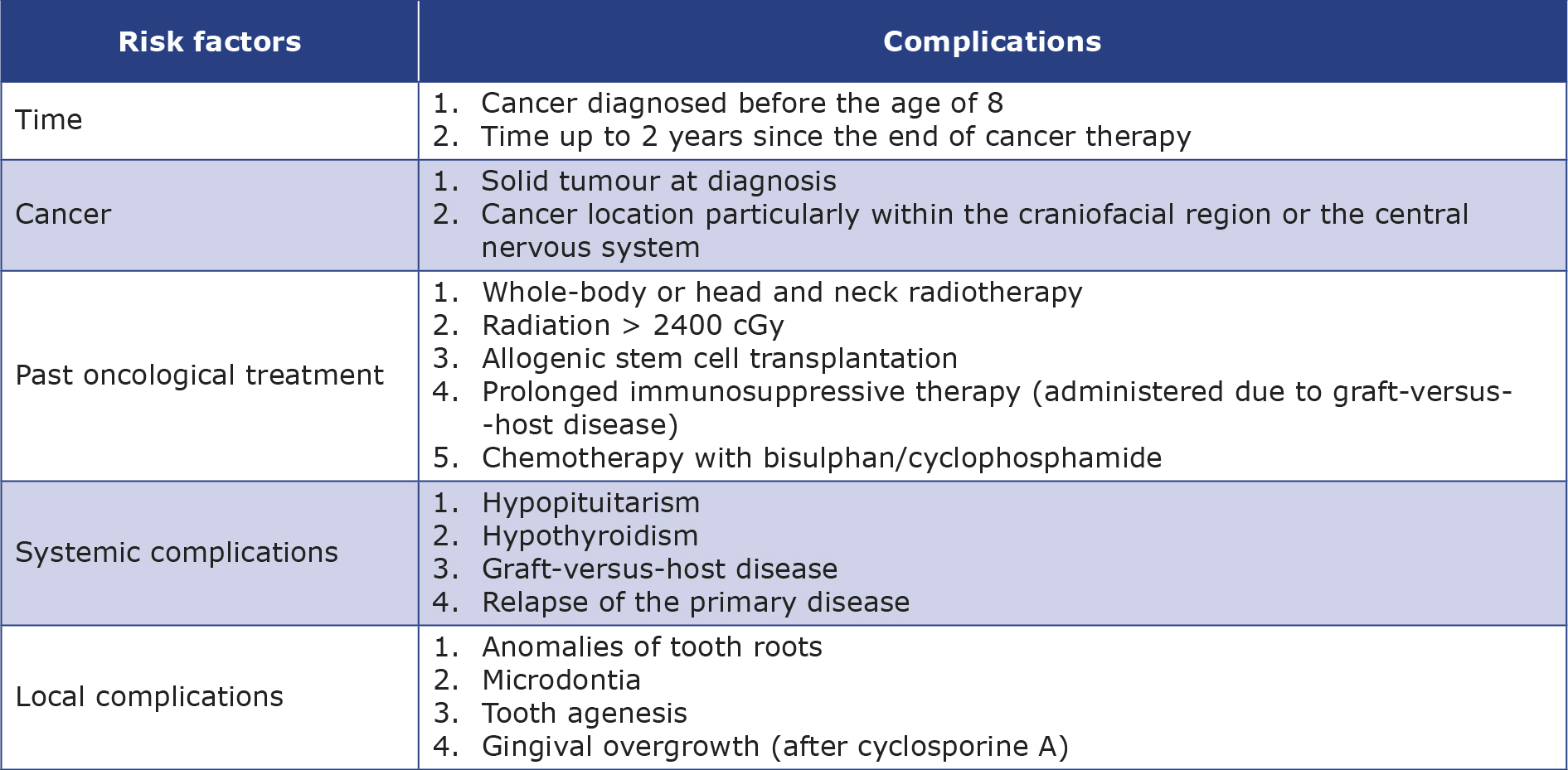 Table 4. Summary of the risk factors for orthodontic treatment complications in patients with a cancer history [2, 5, 10]